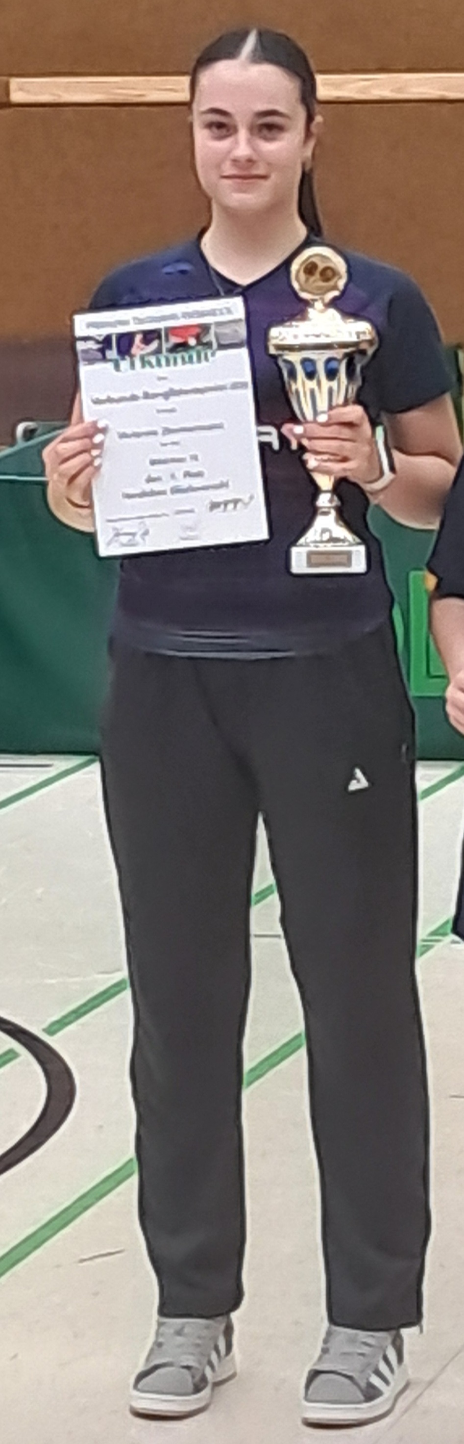 Bei den Mädchen 19 war Vivienne die Favoritin. Ohne Niederlage und mit nur 2 Satzverlusten setzte sie sich gegen die Konkurrenz durch. Nach 2022, 2023, 2024 war dies ihr 4. Titel in Serie. Damit ist sie für die am Wochenende des 08./09.11. in Dissen (Niedersachsen) stattfindenden DTTB Top 48 qualifiziert.